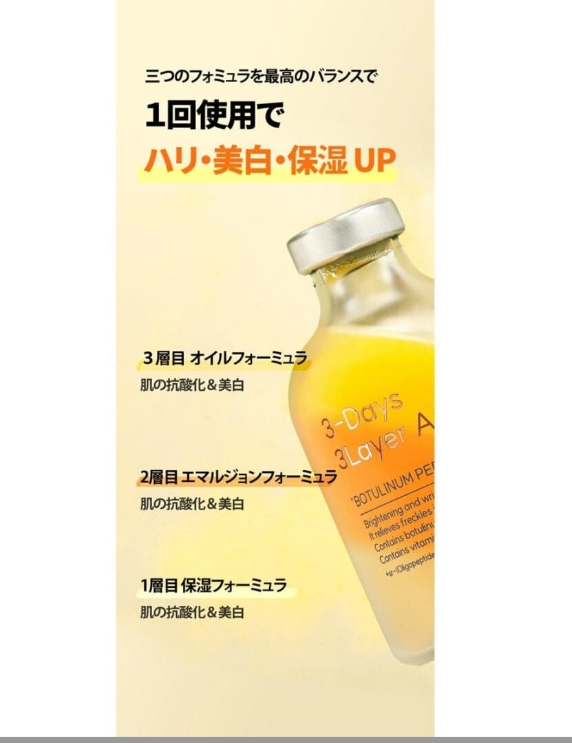セラム、オイル、エマルジョンの3層で構成された美容セラムです。